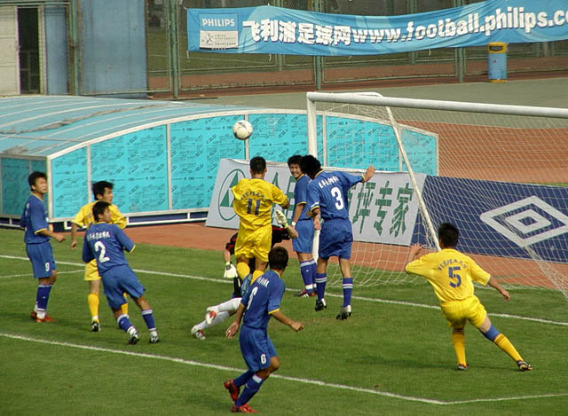 在去年上海大运会足球赛场上,我校足球队曾与东华大学队两次交手,首场比赛和冠亚军争夺赛均打成了0:0,只是在决赛的加时赛后点球决胜时以微弱优势负于对手,屈居亚军。