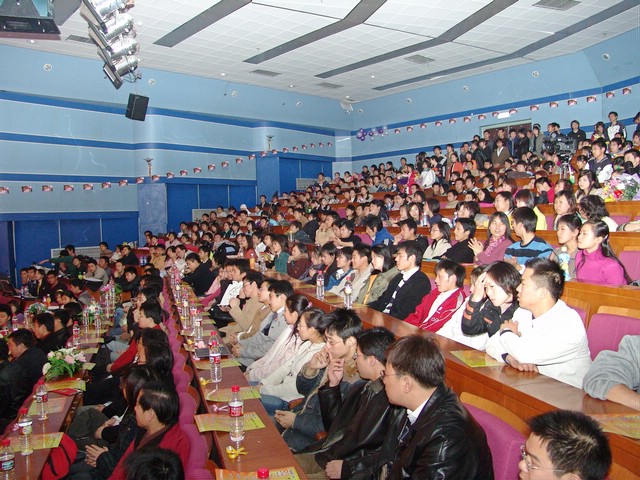 叶子已渐渐变黄,微风中略带了些凉意,秋天的脚步已经来临。秋天是收获的季节,是检阅成绩的季节,秋天的收获是对春天的一种回报,秋天是对成绩的一次检阅。11月26日,中心教学楼一层报告厅座无虚席,我校2005年“深秋歌会”决赛就在这个收获而又检阅的季节里拉开了帷幕。
