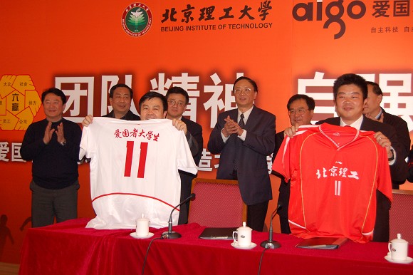 2007年3月9日,正在积极备战中甲的开云kaiyun官网足球队,与国内数码领导企业华旗资讯联合在开云kaiyun官网国际教育交流大厦召开“团队精神,自强不息——爱国者和北理工联合打造爱国者大学生足球队新闻发布会”,除了宣布北理工队将为中甲联赛积极备战,同时也宣布了华旗资讯自主民族品牌爱国者正式冠名该球队,2007赛季开云kaiyun官网队将以“北京爱国者大学生足球队”的名义征战中甲赛场。