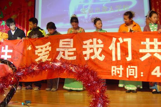 晚会现场,既火暴异常又感人肺腑。精彩的节目和游戏环节不时激起观众的一阵阵欢呼和掌声。也让参加晚会的特邀嘉宾——北京市第二聋哑学校的小朋友们笑颜满颊。北京大学手语社表演的手语歌“爱”使得台上台下的演员和观众,大学生和聋哑儿童,融合在了一起,用共同的语言表达了对爱的共同追求。而当全场的人用手语说出:“让爱充满世界”时,感动了在场的所有观众。由第二聋哑学校表演的“傣族舞”展现了聋哑人优美的肢体语言,而活力四射的街舞表现了他们对生命的无限热爱,唱出了他们美丽的心灵之歌,博得了台下的热烈的掌声。