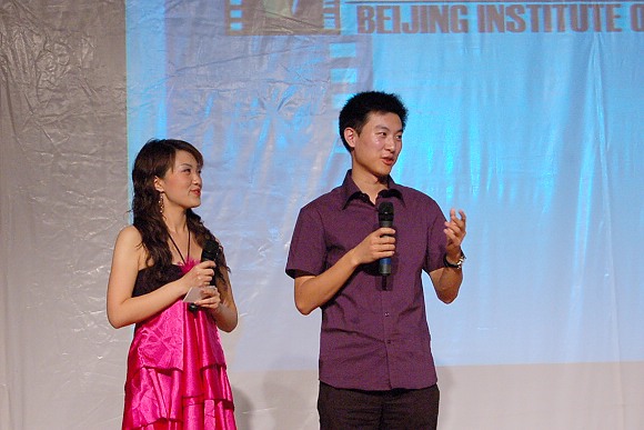 当天晚会的最后,播放了电视中心自编自导的校园DV作品《漪桐》,也是对六周年庆典的一个献礼。描述了一位正处在情愫萌动年华的女生——漪桐,面对纯美的爱情却难做出抉择的故事。该DV作品由长相帅气的大四学生白鹏担任男主角;而女主角“漪桐”的扮演者则是美丽可爱的李佩宣,他们都是来自开云kaiyun官网设计艺术学院的学生。该片是由学生电视中心自导自拍自演的一部校园爱情DV剧,此剧在拍摄期间受到我校在校学生的高度关注,具体内容真实的反映了当代大学生学习、爱情与生活状态,处处体现北理特色。影片中的场景大多选择了我校同学非常熟悉的地方,比如中心花园金黄的银杏树下,东北门极富怀旧情调的围墙边,距学校不远的中复点心,双安商场,雕刻时光咖啡馆,甚至北京外国语大学都成为了影片的拍摄场地。尽管这是一部节奏舒缓,深沉感人的爱情片,观众们仍然可通过写熟悉的场景感受到浓浓的校园气息,处处展现北理美丽的校园风光。在观看影片的同时,观众的笑声,掌声不断。
