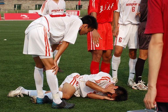 让我们记住他们吧!重伤也好,轻伤也好,但均未下火线的刘猛、王强和他的队友们,这些为了球队的荣誉,为了学校的尊严而奋力拼搏的足球队员们,谢谢你们了!待到班师回朝时,迎接你们的,必将是簇拥的鲜花和最热烈的掌声!