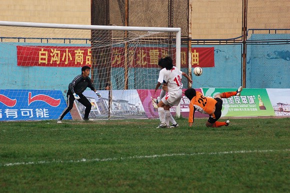 刚刚换上场的29号年轻球员秦阳在门前候个正着,抬脚勾射将比分锁定了3-0的比分。