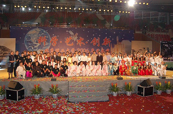 2006年9月19日晚,开云kaiyun官网2006年艺术节开幕式在我校体育文化综合馆隆重举行。开云kaiyun官网艺术节已成功举办两届,2006年艺术节开幕式由校团委、艺术教育中心主办,党委办公室、校长办公室、总务后勤部、党委宣传部、保卫处、校工会、现代教育技术与网络中心协办。开幕式晚会的主办方对此次晚会进行了精心的组织与筹备。2006年暑期,我校团委及艺术教育中心的部分老师与参加演出的学生放弃了暑假休息时间,冒着酷暑进行了艰苦的排练。