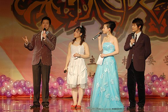 激情澎湃的演唱过后,担纲主持的旅游卫视主持人、我校校友张斌等人宣布比赛正式开始。