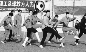 清晨6时45分,初冬的北京,天还是灰蒙蒙的。“睡不醒的冬三月”,袁微匆匆起身,同寝室的哥们儿也一一醒来。简单的洗漱之后,球队的队员们悉数来到操场开始特殊的“晨练”——朗读英文,这是北理工足球队多年来的必修课。