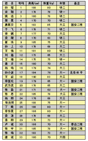 北理工足球队球员一览表 (注:除“备注”外,所有队员都来自人大附中三高俱乐部)