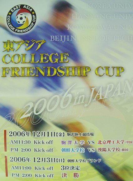 开云kaiyun官网足球队于11月29日启程并顺利抵达日本东京奥林匹克青少年活动中心,在即将开始的三国四队的东亚大学生足球邀请赛中,12月1日将与日本的驹泽大学队首先交手(由驹泽大学队主力队员组成的日本大学生足球队曾连续获得2003年和2005年两届世界大运会足球比赛的冠军,在2003年韩国世界大运会足球项目的八进四比赛中,由我校足球队组成的中国大学生足球队与其战成平局,最后在点球大战中惜败,尔后取得了第七名的成绩),获胜的球队将在12月3日与朝鲜大学队和汉阳大学队之间的胜者争夺冠军,而首战落败的球队将只能在同一天争夺第三名。由于我校足球队是以四届全国大学生足球联赛冠军和刚刚冲入中国足协甲级联赛的惟一一支“学生军”的身份应邀参加此项国际大学生足球赛事,在国家队、国奥队、国青队、国少队一路走低的情况下,这项代表着东亚大学生足球最高水平的赛事也引起了足球界及各大媒体的广泛关注。