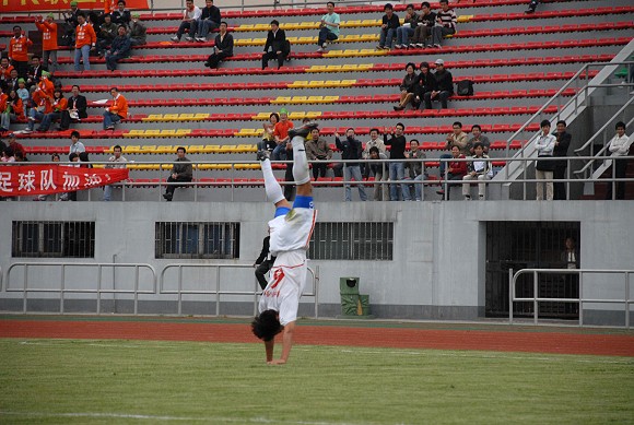 梅开二度的于飞兴奋的在场上翻起了跟斗。