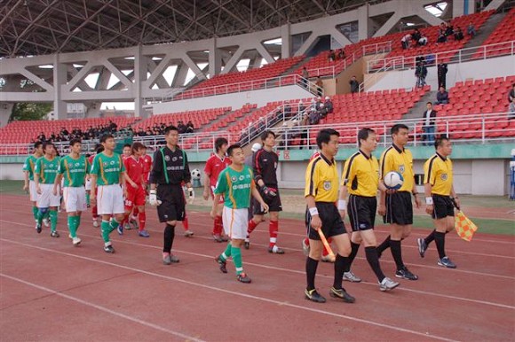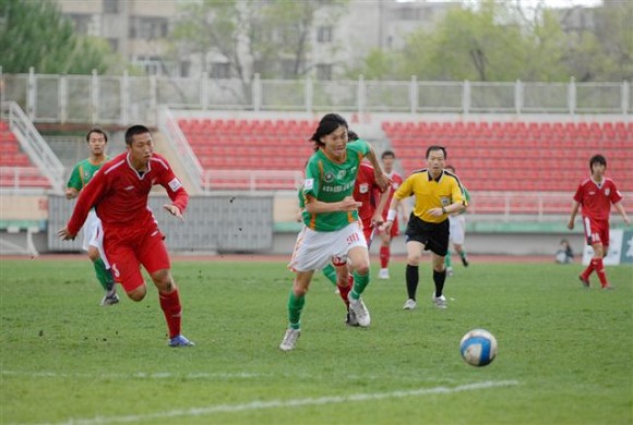 同时,孙祯铎的头球也吹响了毅腾队进攻的号角。上半场十分被动的毅腾队突然获得了主动。第80分钟时,毅腾队有路获得前场任意球,吕建军将球发到左路后,毅腾队员迅速起球,韩国外援陈顺珍高高跃起,将球砸向球门,皮球应声入网,1-0。