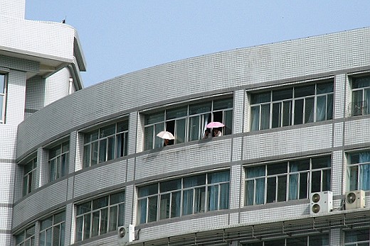不过由于比赛场地观众席数量有限,观看比赛依然“一票难求”,中甲赛场北理工主场独有的“窗挂”风景线依旧,部分同学甚至撑着遮阳伞在楼上看完了整场比赛。
