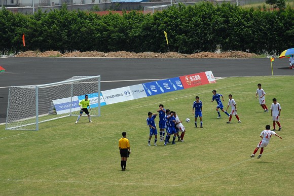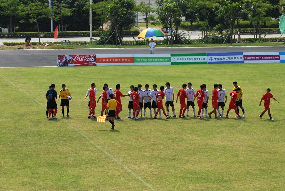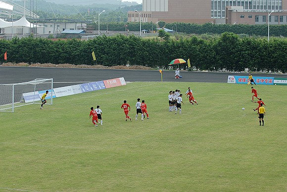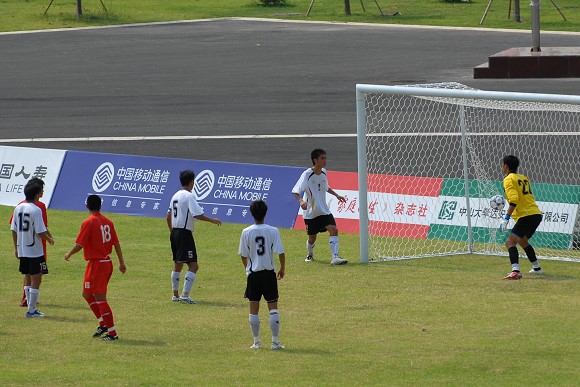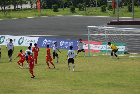 在同属一个半区的B组最后一轮比赛中,河南队(白色队伍)以1:1逼平上届大运会冠军上海队,以一胜两平积5分的成绩与两胜一平积7分的山西队携手出线,而上海队则以一胜一平积4分的成绩惨遭淘汰。