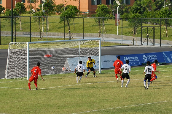比赛开始后刚刚进行了7分钟,北理工前锋3号张宇禁区边缘远射率先破门。