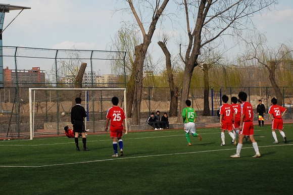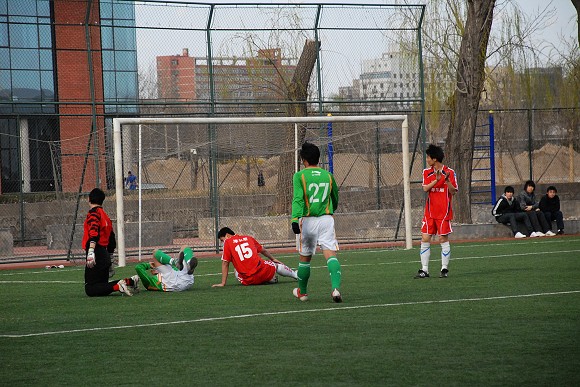 果然,下半场开始后不久,北理工队的李东昊又一次通过禁区前的劲射将比分扩大为3:0,人大队甚至因此更换了守门员。