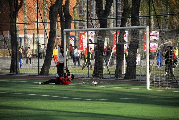 人大队守门员反应不及,只能望门兴叹。最终北理工以5:0的比分大胜人大足球队。