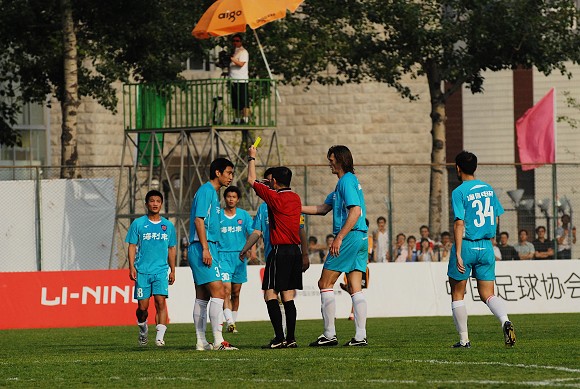比赛的转折点发生在第70分钟,青岛海利丰6号丁伟一个不冷静的正面铲球双飞武方虎,裁判向丁伟出示红牌,造成场上少一人。