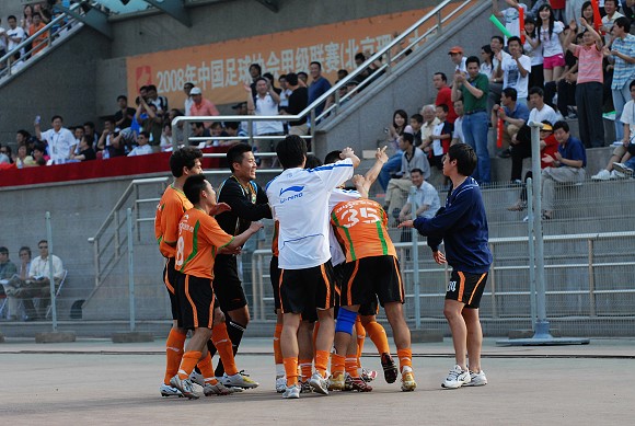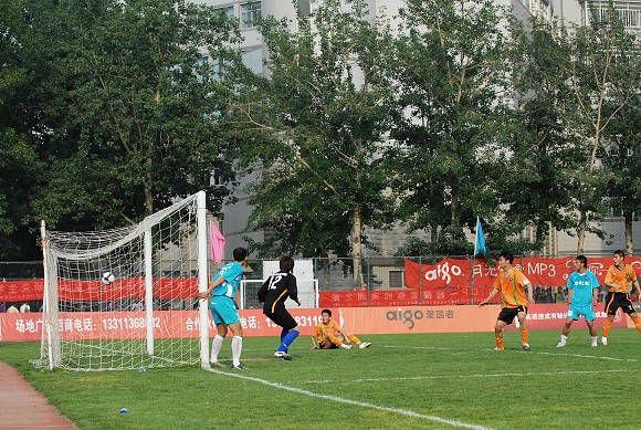 北理工被反超后,力图追回比分,在比赛临近尾声时。北理工在对方禁区展开围攻,此时的青岛队因为少一人,也只有全力防守,第87分钟,北理工边路大脚传球吊入禁区,双方在禁区里形成混战,北理工中场球员刘猛乱军中抢得皮球起脚射门,青岛守门员因为距离太近,没有来得及做出反应皮球就已经进入球网,这样场上比分改写为2比2。