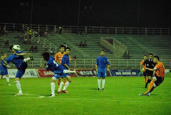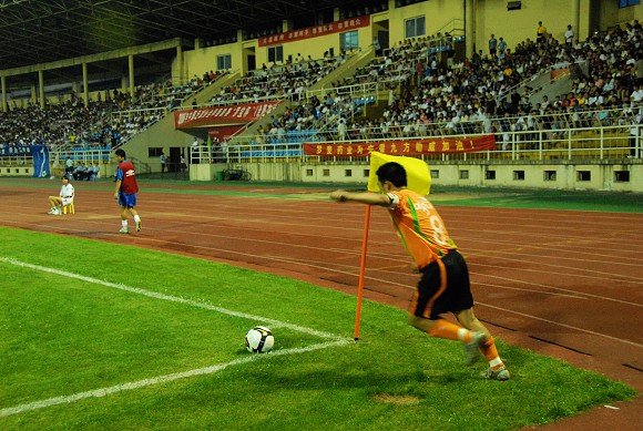 第18分钟北京理工在禁区弧附近犯规,九方队获得一个位置很好的任意球,霍顿主罚打飞.