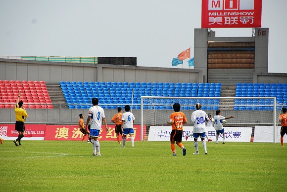5分钟后,川足21号滕彬接球,晃过对方门将后射门得手,但主裁判判越位在先,川足错过领先的机会。