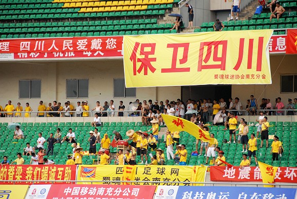 由于地震受灾,川足在5月12日之后的比赛全部改为了客场,而从七场比赛来看,球队也只是取得了一胜一平。尤其在近4场比赛当中,川足不仅一个积分没有拿到,甚至也只是打进了一个进球,这与联赛初期爆冷击败舜天的场景可谓悲喜两重天。最近几天,南充气温陡增,赛场的温度接近38度,但这并未削减狂热的四川球迷,从比赛前一个小时,陆陆续续从各地赶来的球迷便开始入场等待期盼已久的主场比赛。