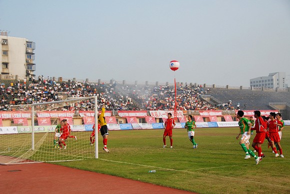 可惜进得快,丢得也快,1分钟后,硝烟依然尚未散去,南昌八一门将的一次冒然出击与本队防守队员撞在了一起。