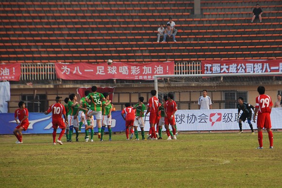 此后,不满足平局的南昌八一队围着北京理工队的大门展开了围攻的态势。下半场第12分钟,高万国的下底传中,法比奥头球攻门被对方门将神奇的扑出,跟上补射的季俊又被北京理工队的后卫破坏。
