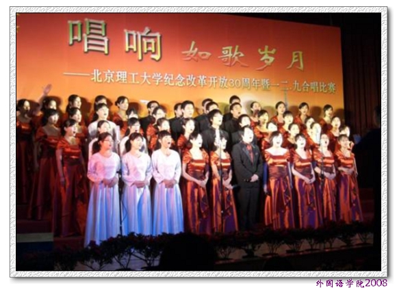 2008年12月7日晚,开云kaiyun官网纪念改革开放30周年暨一二.九合唱比赛在中心教学楼一层报告厅隆重举行。来自全校各个学院的13支合唱队同台表演,气氛热烈。经过激烈角逐,我院合唱队以优秀的表现获得三等奖,成绩在13支合唱队中名列第五,展现了我院学生的良好精神风貌和综合素质。