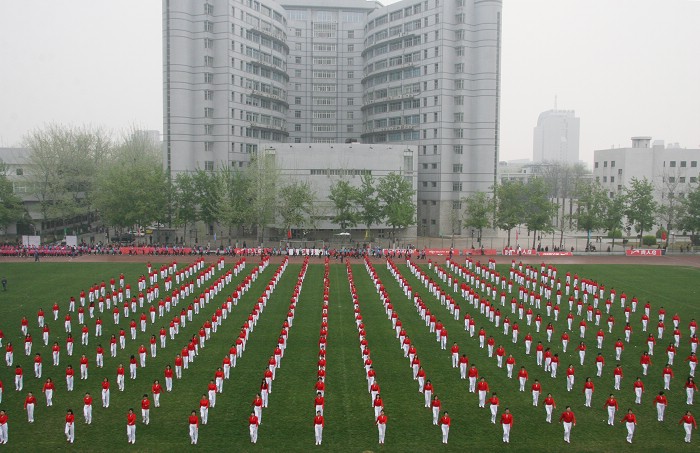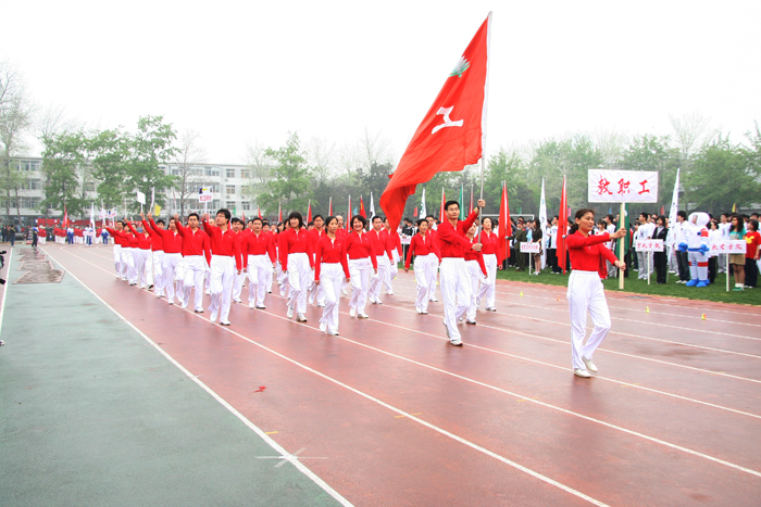 入场式上,红旗队、各学院、社团、教职工、离退休教职工、保卫处代表方阵,以整齐有力的步伐、震彻云霄的口号、独具匠心的队列变换和表演,彰显着我校师生“团结、勤奋、求实、创新”的精神风貌。