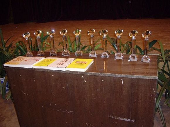 在场嘉宾及上届获奖同学为获奖者颁发奖杯、获奖证书及奖品成为晚会的高潮。
