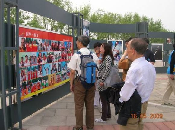 在奥林匹克水上公园,大家乘坐电瓶车游览了赛艇比赛的场地,并在导游员的引导下,参观了奥运赛场的主要设施,坐在主席台上感受了“中国队加油!”的欢乐场景!站在浮出水面的颁奖台上,年轻的同志激动地跳着、摇着,……。在奥运健儿冲金夺银图片的展板前,当导游员介绍到234名各国运动员夺得了32块奖牌的时候,大家都兴奋地寻找中国运动员的位置,并纷纷留影纪念,同志们为我国成功举办2008年奥运会而自豪,伟大的奥林匹克精神将永远激励着全世界爱好和平的人们。