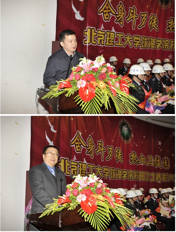 珠海学院院长、党委书记庞思勤教授颁布嘉奖令,先进个人代表保安员张旺发言