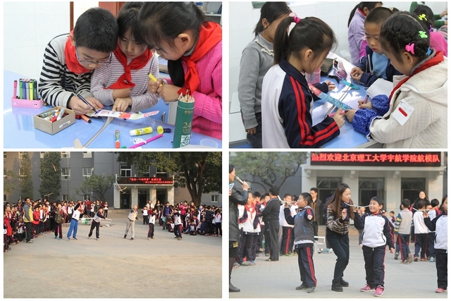 最让孩子们的激动的是亲手放飞模型的环节。航模队的队员为理工附小18个班每个班制作了一架手掷飞机,学生们为自己班级的飞机命名并涂上了漂亮的颜色。小学生们手持飞机,亲身体验着放飞的喜悦,一架架飞机带着学生们小小的宇航梦飞行蓝天。