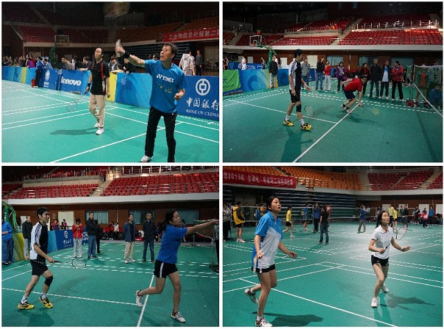11月9日、10日,在连续两个半天的比赛中,体育馆里叫好声和鼓掌声此起彼伏。计算机学院羽毛球代表队的队员们摩拳擦掌,势在必得,学院魏名山书记放弃休息时间天天到场观阵,鼓舞士气。场上队员艰苦拼搏,场下预备队员热情助威,工会干部积极做好后勤服务,全体队员和工会干部展示出了不可战胜的团结协作的精神风貌,大家齐心协力为再铸辉煌贡献出自己的力量。
