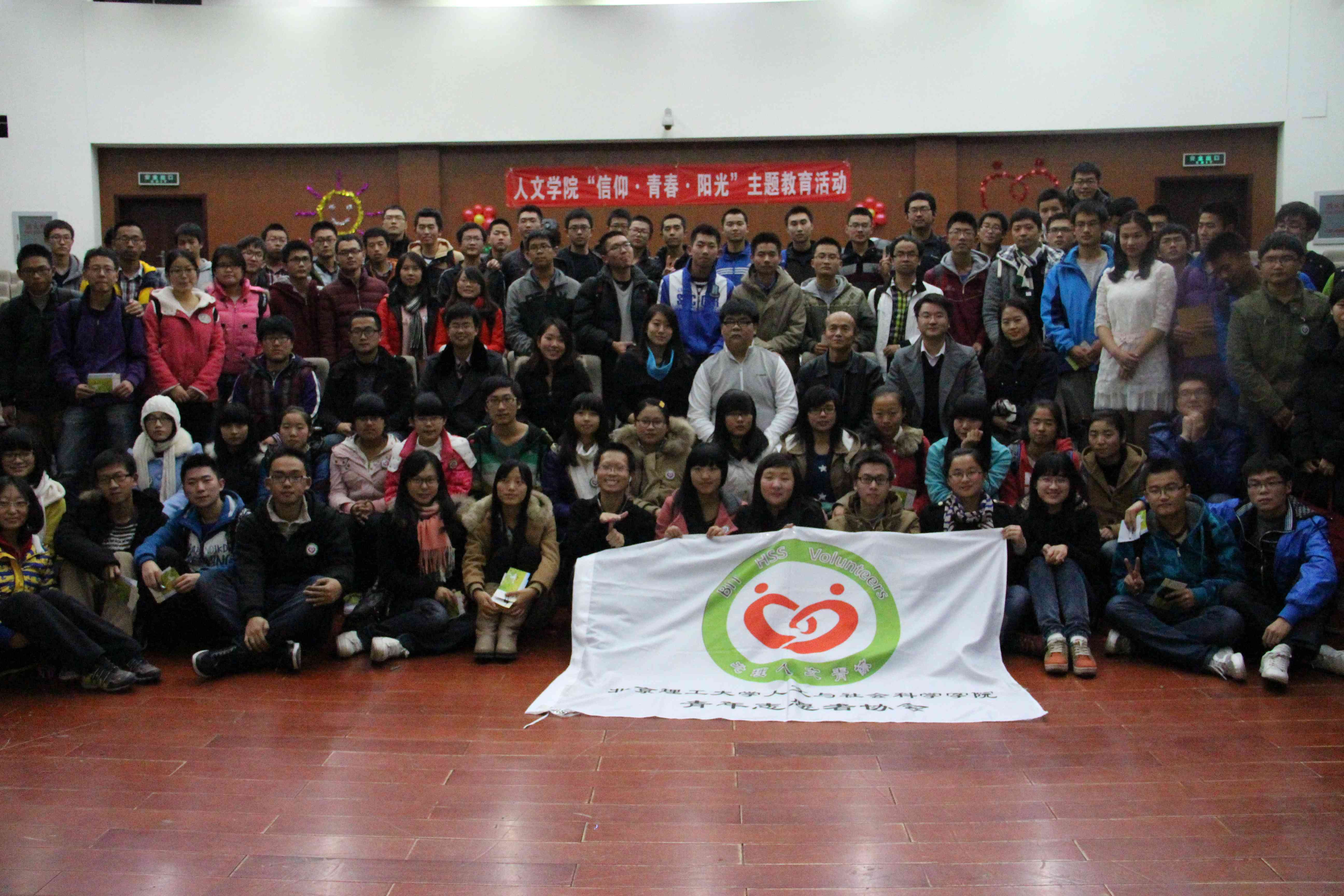 2013年11月26日晚,由人文学院分团委主办,人文学院青年志愿者协会承办的“有阳光,不要怕”盲人歌手杨光励志讲唱会暨“信仰 青春 阳光”教育活动在良乡校区综教演艺厅唱响。参加本次晚会的有外国语学院老师周芳集,化学学院老师王绍辉,数学学院老师孙红权、宫婷,管理与经济学院老师陈铮、赵航,设计与艺术学院老师陈丽健,人文与社会学院老师于满,全校各专业300多名学生参与其中。