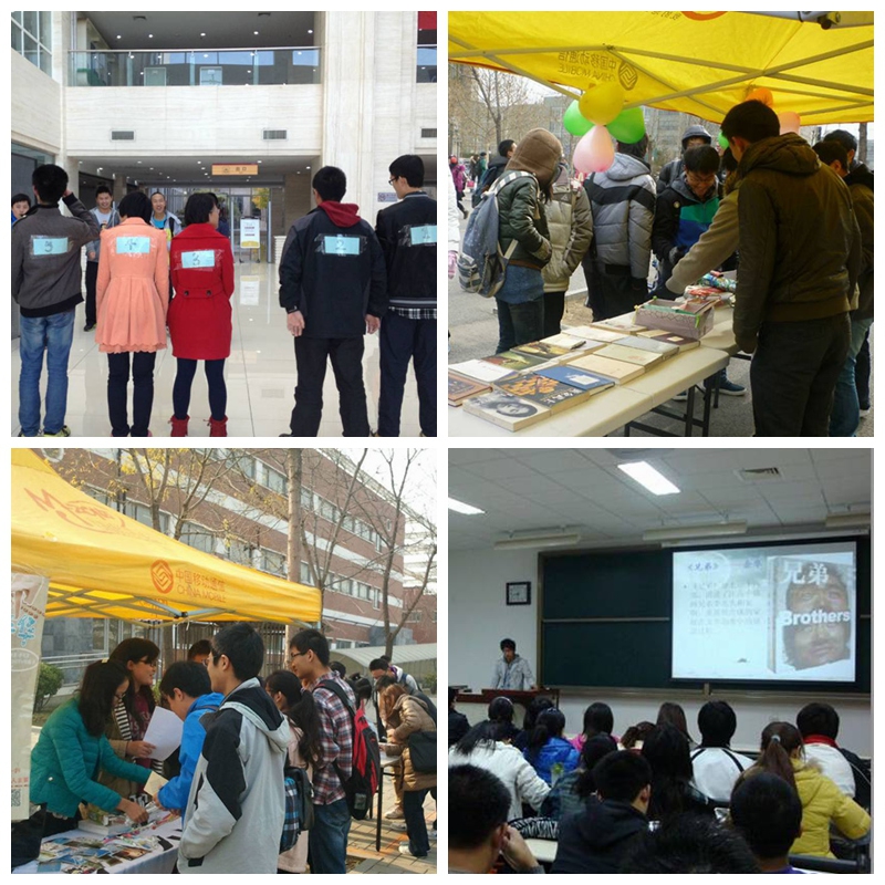 2013年4月至10月,在北京市“共享书香,助力成长”读书节活动的号召下,理材学部微尘志愿者团支部成功开展“梦想起航 从阅读做起”主题团日活动。活动内容包括以好书推荐为主的“晒书日”,以传播书籍文化为主的图书知识竞赛,以图书馆认知为主的Running Book,以及以征集学校图书相关服务意见为主的读者回音壁等四项内容。作为以社团为基础成立的创新型团支部,微尘志愿者团支部为扩大活动影响力,联合理材学部团总支,以及学部其他七个团支部,分别以独立团日和联合团日的形式,完成此次团日活动。