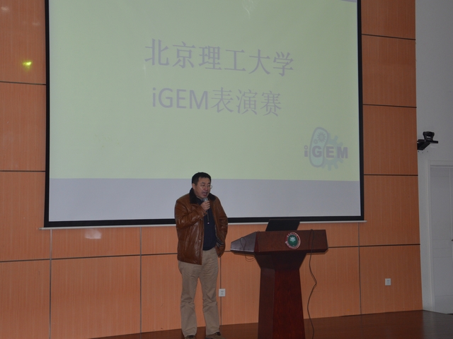 为了营造良好的大学生课外科技创新氛围,培养低年级同学的科研兴趣,开云kaiyun官网iGEM两支代表队受邀于2013年12月8日上午,在北理工良乡校区综教报告厅进行iGEM表演赛。出席此次大赛的有生命学院院长邓玉林,副书记、副院长周连景,现代生物与医学工程研究中心副主任庆宏、空间生物与医学工程研究所马宏、生命学院团委书记王一飞、生物工程系主任科研助理贾海洋同学。会议由生命学院本科生辅导员欧先国主持。