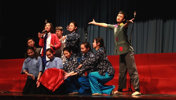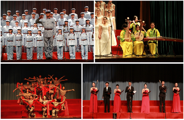 歌咏比赛在表演唱《红梅赞》中拉开帷幕。在“我爱你中国”、“救亡与解放”、“追寻中国梦”三个篇章中,进入决赛的12支队伍相继演唱了《唱支山歌给党听》、《歌唱祖国》等经典爱国歌曲,各参赛队以声情并茂的演唱,热情饱满的精神面貌,丰富多彩的舞台造型以及富有新意的场景表演赢得了在场观众一阵阵热烈的掌声,同时也赢得了到场评委的一致好评。篇章之间,我校大学生艺术团还表演了纪念毛泽东同志诞辰120周年的原创舞蹈《东方红》及诗朗诵《追梦青春》。