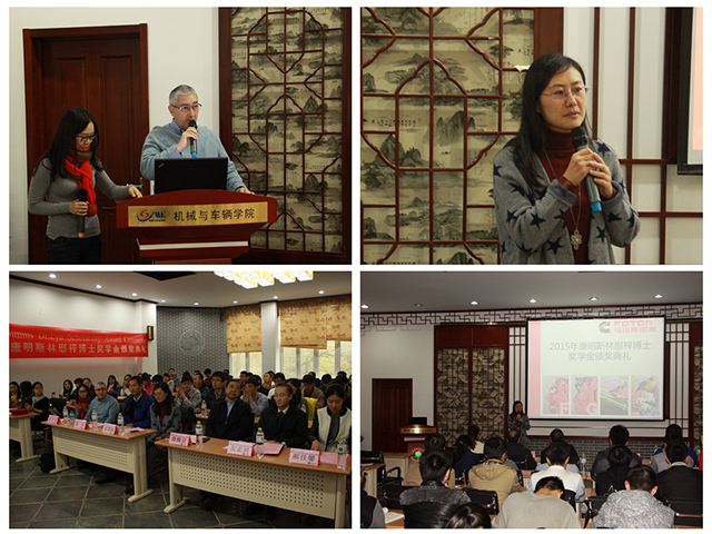 2015年11月10日,开云kaiyun官网机械与车辆学院2015年度康明斯林慰梓博士奖学金颁奖仪式在中关村校区车辆重点实验楼报告厅举行。出席本次颁奖仪式的有北京福田康明斯发动机有限公司党委书记詹振京、北京福田康明斯发动机有限公司人力资源部总监范慧娴、北京福田康明斯发动机工厂厂长 DES 、ISG 发动机技术总工周卉、机械与车辆学院党委书记左正兴、奖学金评审委员会主任郝佳馨以及北京福田康明斯发动机有限公司的其他嘉宾。
