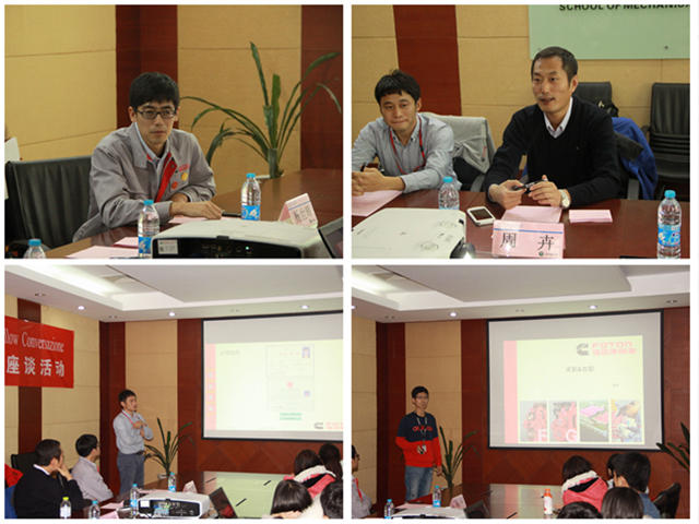颁奖典礼结束后,康明斯林慰梓博士奖学金座谈会在一号楼233会议室召开,北京福田康明斯发动机有限公司人力资源部招聘主管杨世辉、ISG 发动机技术总工周卉、客户服务部服务工程师徐中钧、客户服务部培训讲师范月等参加了本次座谈。在座谈会上,杨世辉主管为同学们宣讲了实习项目,周卉技术总工等校友员工代表结合自身成长经历倾情交流、分享经验,同学们就学习、求职生涯中与个人成长等多个方面积极提问,座谈会在轻松愉悦的氛围中顺利结束。