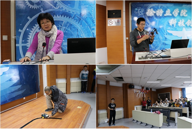 11月21日,“科技创新周”闭幕式在良乡校区举行,徐特立学院副院长程杞元为优秀小组颁奖并讲话。她肯定了三周以来同学们在活动中取得的成绩,鼓励大家“沉下心来做学问,坚持不懈做研究”,充分利用课余时间体验、参与科技创新。同时,她还强调要把“课上所学”和“课下所思”紧密结合起来,只有这样才能“不罔不怠,相得益彰”。会上,部分小组还进行了“智能车避障”、“无人机多点巡航”、“机械臂自动运行”的精彩展示。