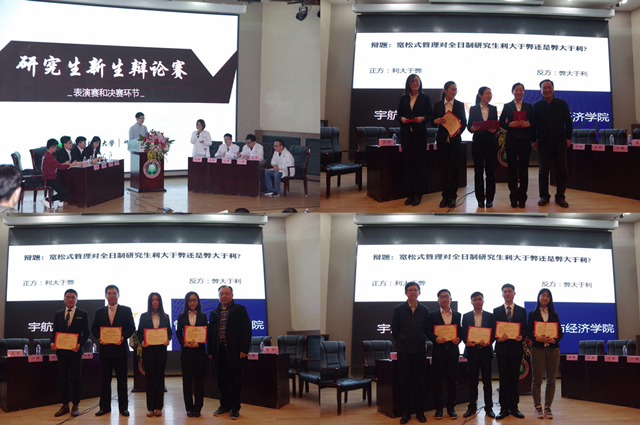 表演赛结束后,辩论赛决赛正式开始。决赛辩题为“宽松式管理对全日制研究生利大于弊还是弊大于利”。持“利大于弊”观点的正方代表队宇航学院辩论队和持“弊大于利”观点的反方代表队管理与经济学院辩论队展开了激烈的辩论,一时之间场上场下都充满了浓浓的火药味。不管是立论陈词、攻辩环节还是总结陈词,八位辩手灵活的思维节奏、缜密的逻辑推理和敏捷的临场反应都使得整个比赛高潮迭起。