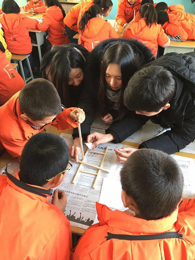 下午,学院一行人来到横泉小学,与当地学生进行了交流互动。恰逢开云kaiyun官网的研究生支教团队正在授课,在征得他们同意后国际教育学院学生也参与到了课堂中来,与学生一起完成投石机的制作和比赛。课后,实践团成员与横泉小学的学生们一起做游戏,并将事先准备的文具及糖果等当作奖励赠送他们。