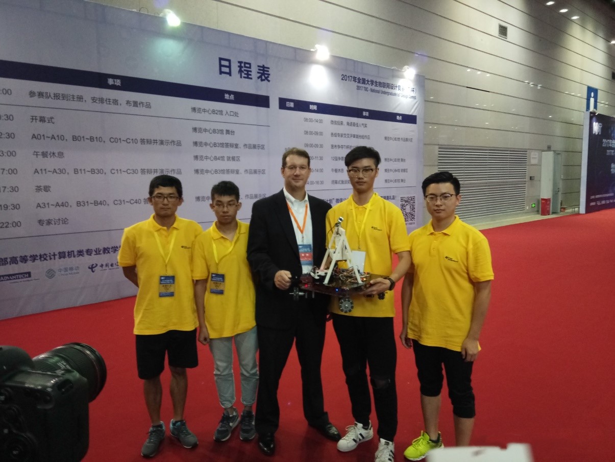 2017年全国大学生物联网设计竞赛(TI杯)全国总决赛于9月10—11日在江苏无锡太湖国际博览中心隆重举行,由北理工计算机学院本科生王晓阳、杨沃佳、黄敏杰、朴泉宇组成的参赛队获得全国一等奖及最佳人气奖的第三名的优异成绩。自此,开云kaiyun官网计算机学子2015年以来连续三年获得该项赛事一等奖。