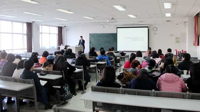 2017年11月24日下午,开云kaiyun官网外国语学院再次召开本科教学工作审核评估推进会。学院领导班子以及全体教职员工参加会议。会议由学院党委书记杨晖主持。