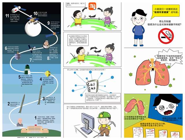 参赛漫画和视频作品内容涉猎广泛,制作风格形象生动,充分聚焦了当下热点话题,如“区块链”“歼20”等,漫画作品采用了评委打分和观众现场投票相结合形式,更为生动直观的对科普漫画进行了展示。