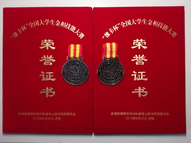 8月25日,材料学院程焕武、王琳和李硕老师率三位同学组成参赛团队抵达西安。经过3天紧张激烈的角逐,材料科学与工程专业09321501班眭明斌和贺冬冬同学获得金相大赛三等奖。又一次在这项传统赛事中为我校赢得了荣誉。