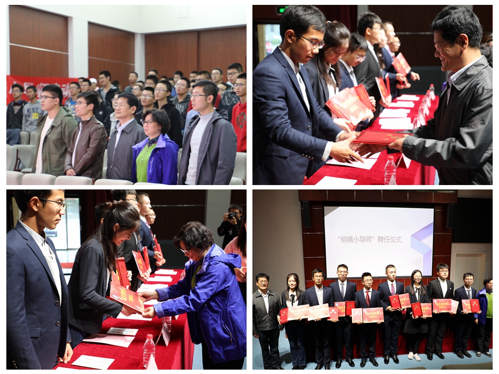 会上,张笈为8名讲述人颁发“汇贤榜样基金”,表彰他们大学期间取得的优异成绩,同时激励一年级学生向榜样学习,传承红色基因,树立远大志向。程杞元向同学们颁发“明精小导师”聘书,希望高年级学生在潜心学术,致力科研的同时,能够主动作为,以点带面,带动2018级学生共同成长。