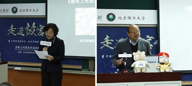 教学运行与考务中心主任曹峰梅代表学校对余辉的到来表示欢迎。她表示,《走进故宫》通识选修课对学生的通识教育很有意义,让《清明上河图》里的“高科技”在北理工再现,文明与历史再次擦显火花。学校积极响应国家号召引入优质精品通识课程,本学期从智慧树平台引入18门在线课程,全校选课1000余人次,其中有120人选修《走进故宫》这门通识课。她说,通过余辉老师的讲授,能够更好地巩固大家的文化自信和民族自信,相信每个人都会从中有所收获。