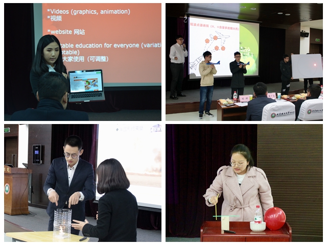 比赛现场,选手们将科学实验、引导互动、情景剧等形式融合至科普讲解中,形象生动,引人入胜。外国语学院苑鑫小组以舞台剧的形式,解释了“口译是怎么练成的”;留学生Obaid利用“3D打印技术”设计出了可操作活动的手掌模型;物理学院的邱苏玲小组以“未来分析巨星——LIBS”为题,讲解了科学前沿的激光诱导击穿等离子发射光谱分析;机电学院的樊志伟小组以“红外诱饵与制导导弹的发展”为题,利用自制模型现场模拟制导导弹作战过程,生动地介绍了红外诱饵在战斗过程中的重要作用,彰显我校军工特色。