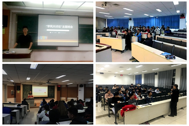 在开展“学风大讨论”活动中,班主任通过召开主题班会引导同学们反思学习中存在的不良现象以及带来的负面影响,自主形成《班级学风倡议书》,开展“良好学风我先行”活动,各班按照倡议内容发动同学们摒弃不良学风陋习,自觉养成积极的学习习惯。为唤起学生的共鸣和反思,17821703班自导自演拍摄了4期“校园不良学风行为那些事儿”微视频,将上课迟到、吃东西、玩手机、考试作弊等负面现象以风趣幽默又引人深思的形式展现出来,当学生以傍观者的视角重新审视这些行为时更能反思和意识到其危害性。